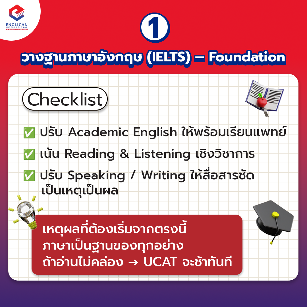 การวางฐานภาษาอังกฤษคือจุดเริ่มต้นของทุกอย่าง ภาษาไม่ได้มีไว้แค่สอบ IELTS แต่เป็นเครื่องมือในการเรียนแพทย์ทั้งหมด ตั้งแต่การอ่านบทความวิชาการ การฟังเลกเชอร์ ไปจนถึงการอธิบายเหตุผลอย่างมีโครงสร้าง หากภาษาไม่แข็ง การสอบ UCAT และการสัมภาษณ์ MMI จะช้าลงทันที นี่คือเหตุผลที่ FutureMed Prep ให้ความสำคัญกับ Academic English ตั้งแต่ต้นทาง