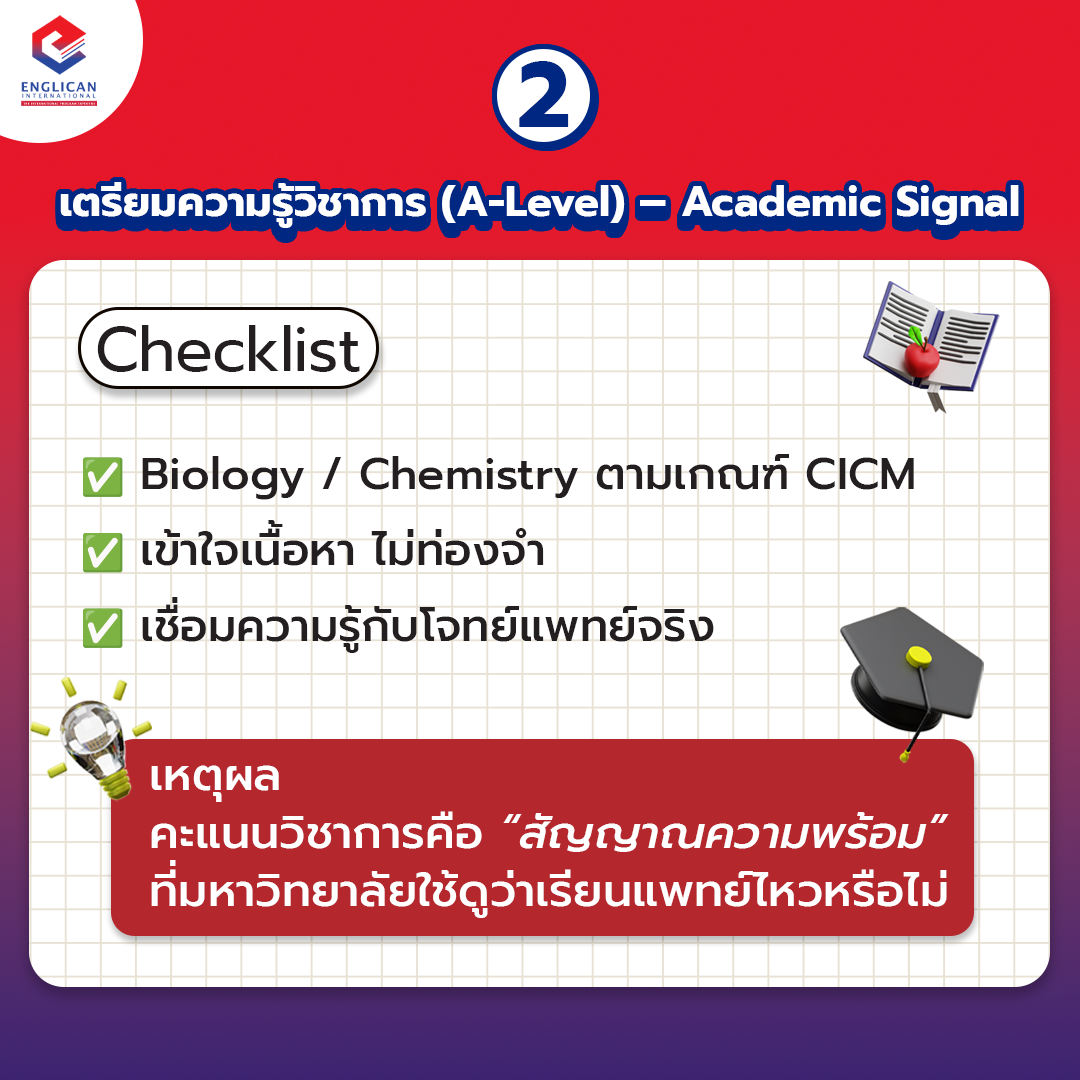 คะแนนวิชาการคือสัญญาณความพร้อมที่มหาวิทยาลัยใช้ดูว่าผู้สมัครสามารถเรียนแพทย์ได้จริงหรือไม่ Biology และ Chemistry ตามเกณฑ์ CICM ไม่ได้เน้นการท่องจำ แต่เน้นความเข้าใจและการเชื่อมโยงเหตุผล เพราะสิ่งที่คณะมองหาคือคนที่คิดเป็น ไม่ใช่แค่จำเก่ง คะแนนจึงต้องสะท้อนศักยภาพทางความคิด ไม่ใช่แค่ตัวเลขบนกระดาษ