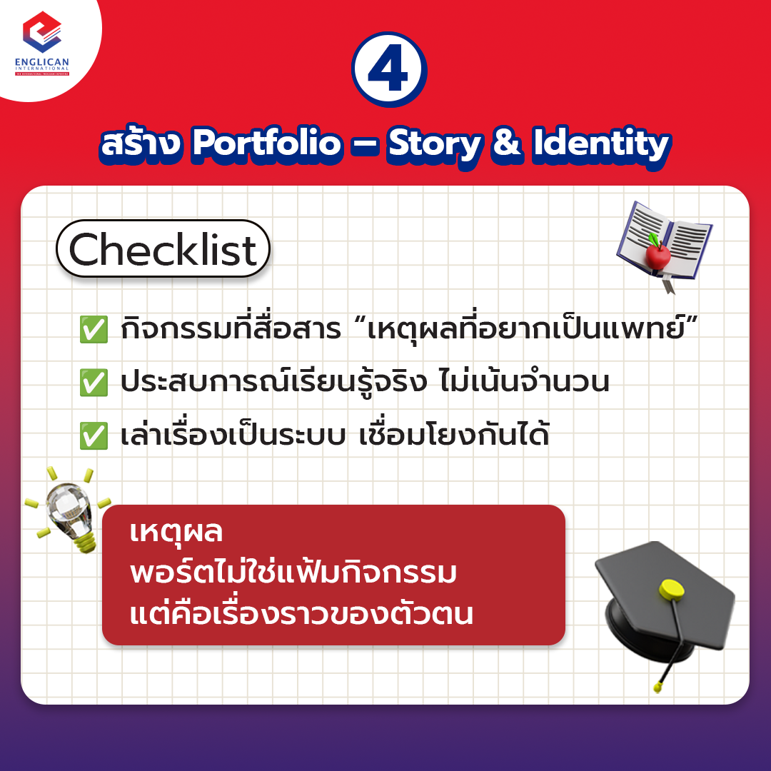 พอร์ตที่ดีไม่ใช่แฟ้มกิจกรรมจำนวนมาก แต่คือเรื่องราวที่เล่าว่าผู้สมัครเป็นใครและเรียนรู้อะไรจากประสบการณ์ที่ทำ กิจกรรมต้องมีเหตุผล เชื่อมโยงกันได้ และสะท้อนตัวตนจริง เพราะคณะไม่ได้ถามว่า “ทำอะไรมาบ้าง” แต่ถามว่า “เข้าใจตัวเองมากแค่ไหน”