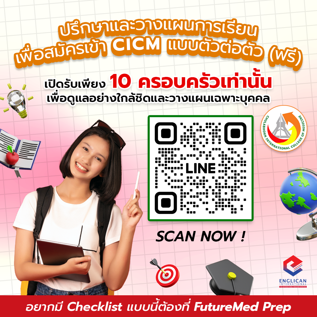 FutureMed Prep เปิดให้ปรึกษาและวางแผนการเรียนเพื่อสมัคร CICM แบบตัวต่อตัว โดยออกแบบเส้นทางเฉพาะบุคคลจากพื้นฐานจริง เพื่อให้การเตรียมตัวไม่หลงทาง ไม่เสียเวลา และไม่พยายามผิดจุด หากคุณอยากมี Checklist ที่พาไปถึงจริง การเริ่มต้นจากแผนที่ถูกต้องตั้งแต่วันนี้ คือสิ่งที่จะเปลี่ยนความฝันให้เป็นผลลัพธ์ได้